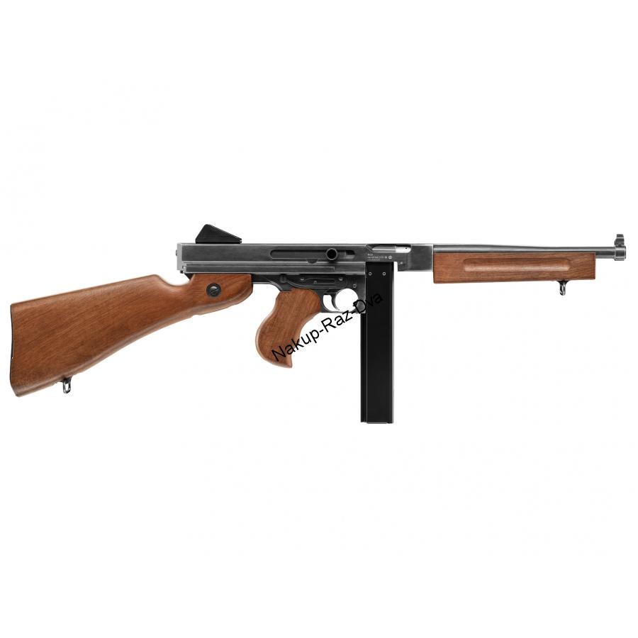 Kdo by tento samopal neznal. Vydařená replika mafiánského samopalu Thompson M1928 na ocelové kuličky s pohonem CO2.